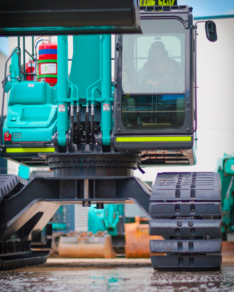 The Kobelco SK210LC High and Wide excavator is part of the Kobelco line-up of specially equipped machines for forestry and hilly terrain work. The high and wide specification series has generous ground clearance and the extra crawler width ensures excellent stability for greater lifting capacity. Durability is significantly improved with full track guides and larger upper rollers for the crawlers which prevents de-tracking. The double grouser shoes provide better grip and are designed to work smoothly over the roughest ground.