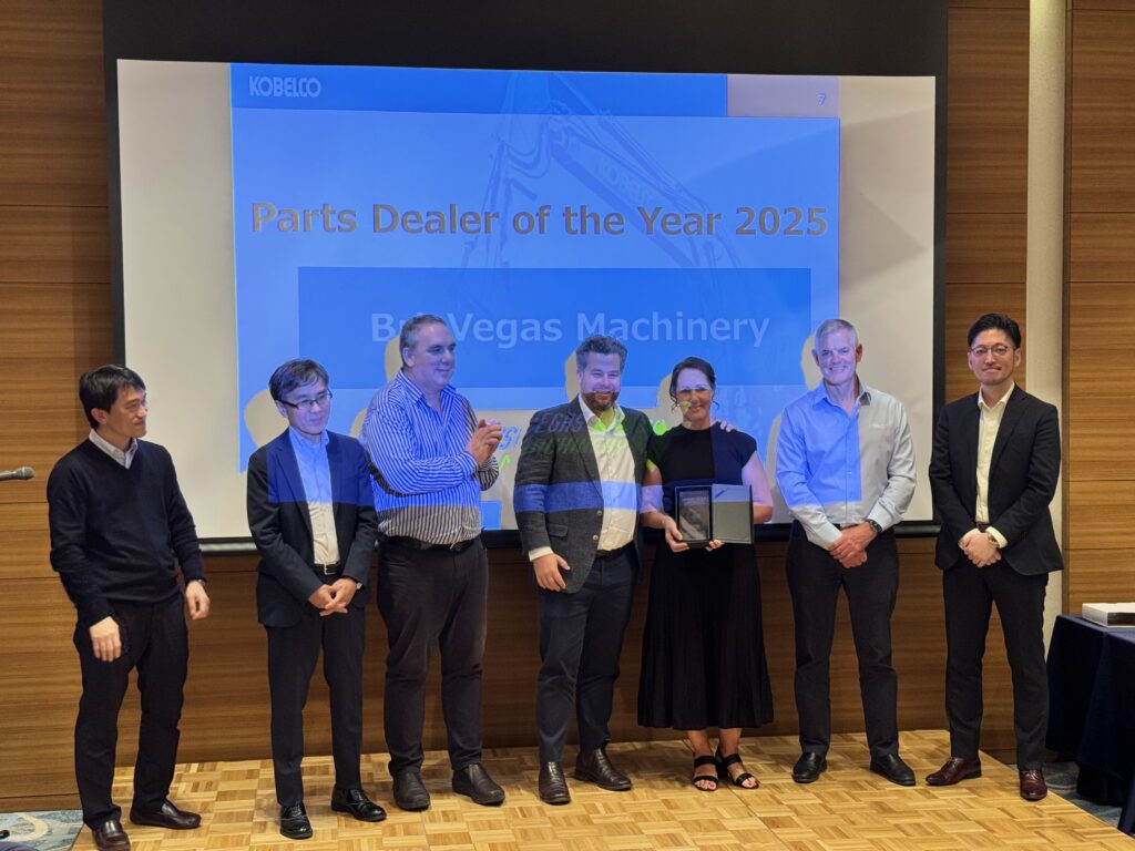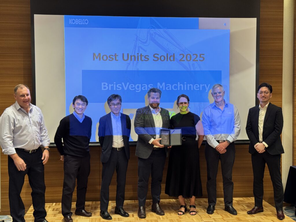 At this year’s Kobelco Dealer Conference in Japan, our group was proud to see significant achievements recognised across both Brisvegas Machinery and Melbourne Tractors. Brisvegas Machinery was honoured with Parts Dealer of the Year, Most Units Sold, and the prestigious 2026 Kobelco Dealer of the Year, while Melbourne Tractors was recognised as Service Dealer of the Year—an award that reflects the incdredibly high standards, dedication, and customer‑focused approach of our service teams across Victoria & Queensland.